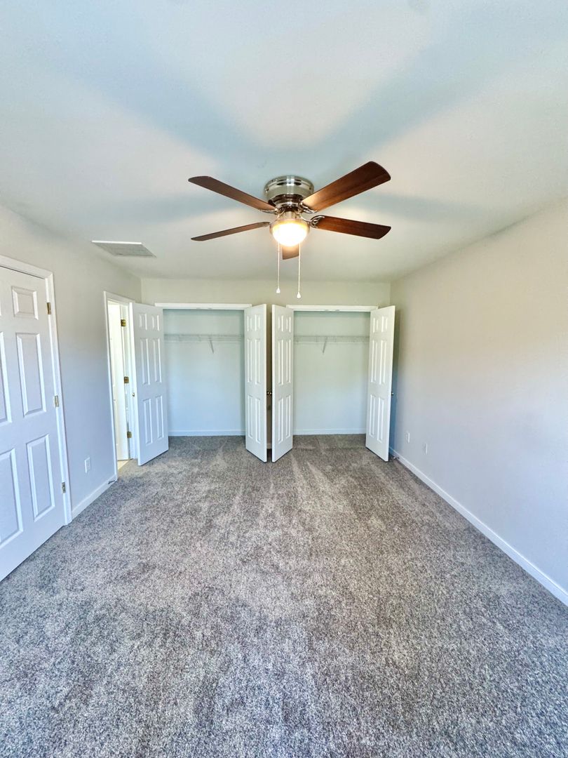 The spacious primary bedroom features double closets for ample storage.