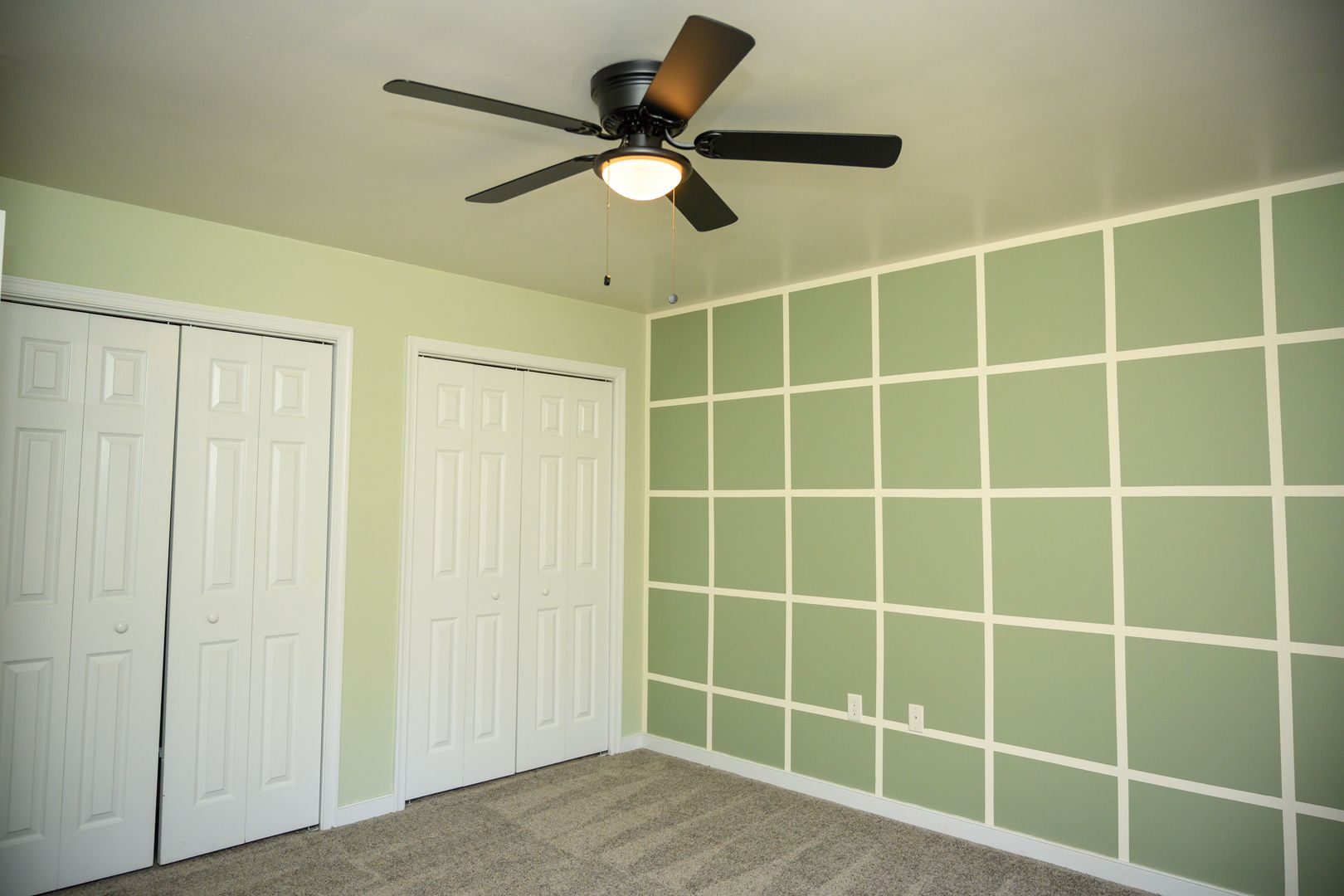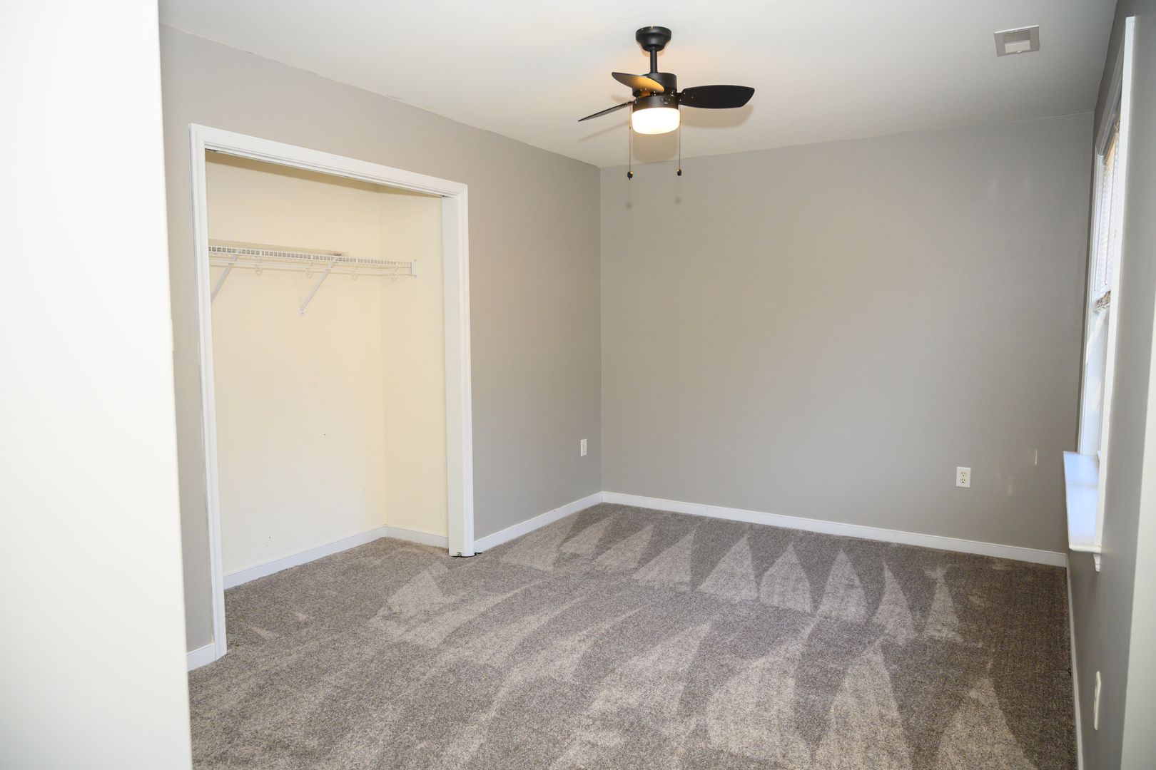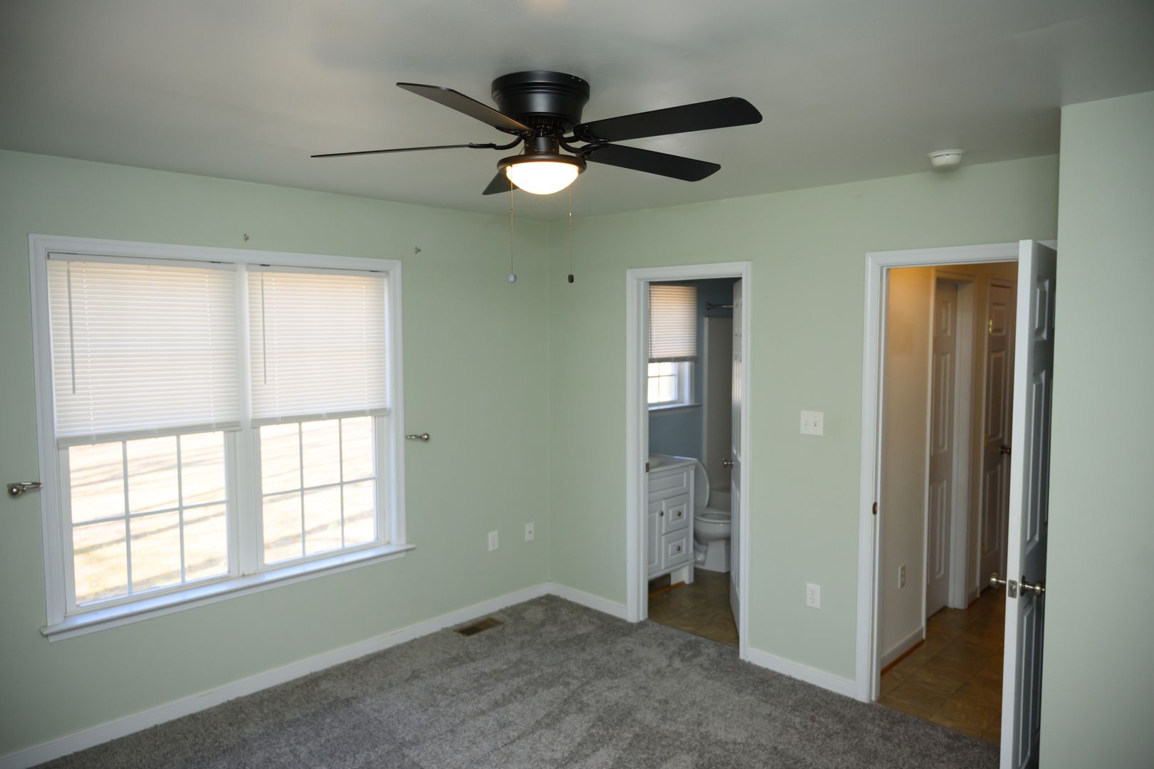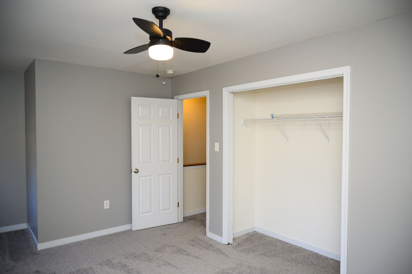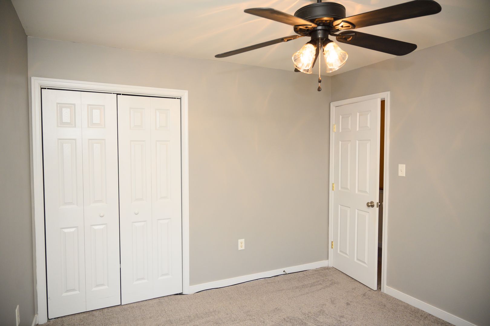 Upstairs, you'll find two comfortable bedrooms, each with ample closet space, ceiling fans, and newer carpeting. These rooms share a full bathroom, making the space versatile for family living or guests.