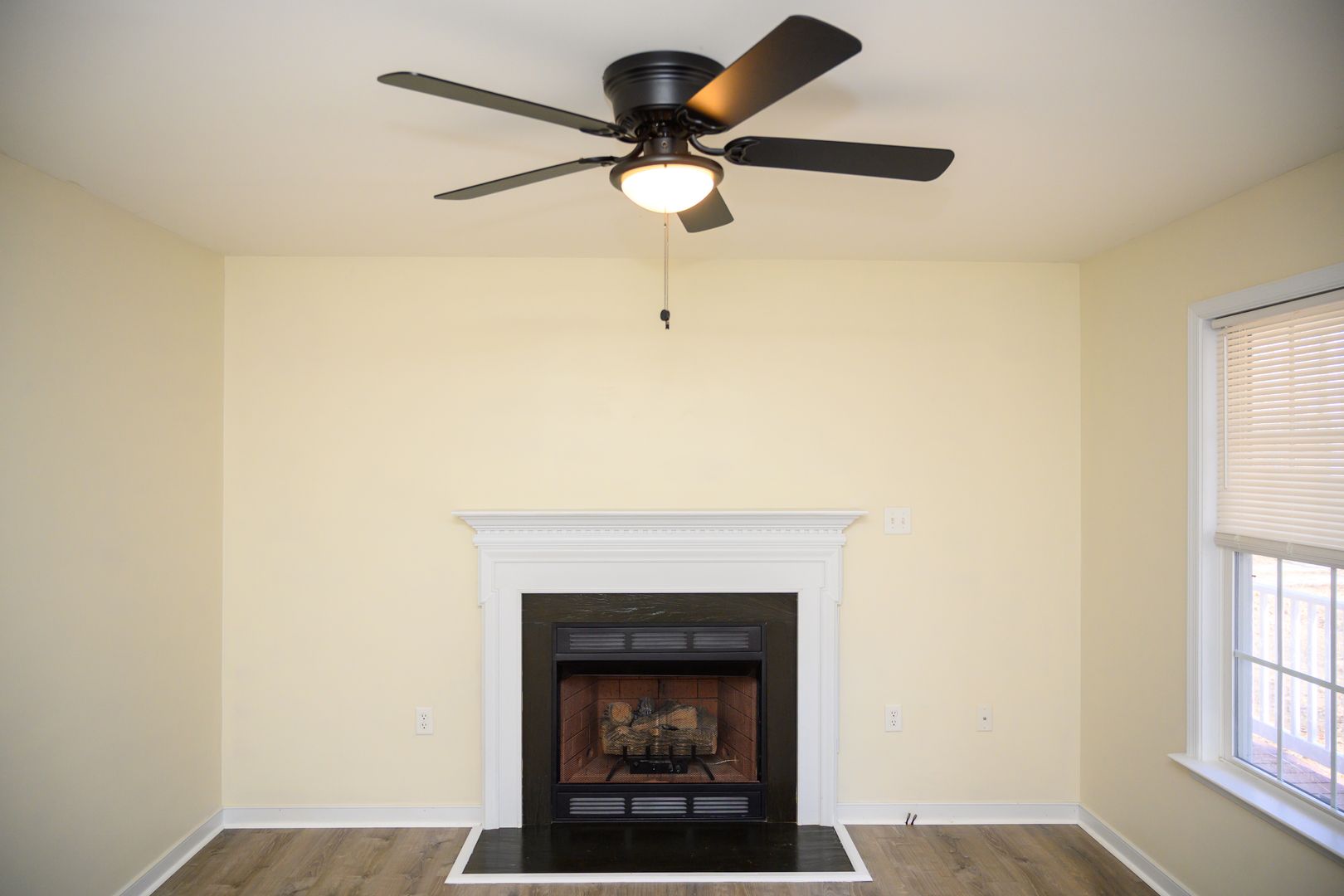 Inside, the spacious layout includes a first-floor primary bedroom with newer carpeting, a ceiling fan, and a full ensuite bathroom, which is also conveniently accessible from the hallway. The bright and welcoming family room is perfect for relaxation or entertaining, featuring newly installed luxury vinyl plank (LVP) flooring, a ceiling fan, and a beautiful, aesthetically pleasing fireplace that enhances the space—though please note, it is not operable.